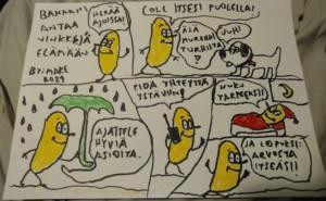 Sarjakuva, jossa banaanihahmo antaa elämänohjeita.