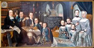 Siinä katsellessani omia perhekuviani, muistin myös Jonas Gardellin hienon tv-sarjan Puoliksi kätketyt, joka tuli telkkarista noin kymmenen vuotta sitten. Jokainen osa alkoi taiteilija Jonas Dürchsin maalauksella Hjortbergin pappisperheestä. Maalaus on 1700-luvulta ja se on yksi Ruotsin kuuluisimpia tauluja, joka on tavallisesti nähtävillä Släpsin kirkossa. Isä ja äiti ovat suuren lapsikatraansa kanssa maalauksessa.