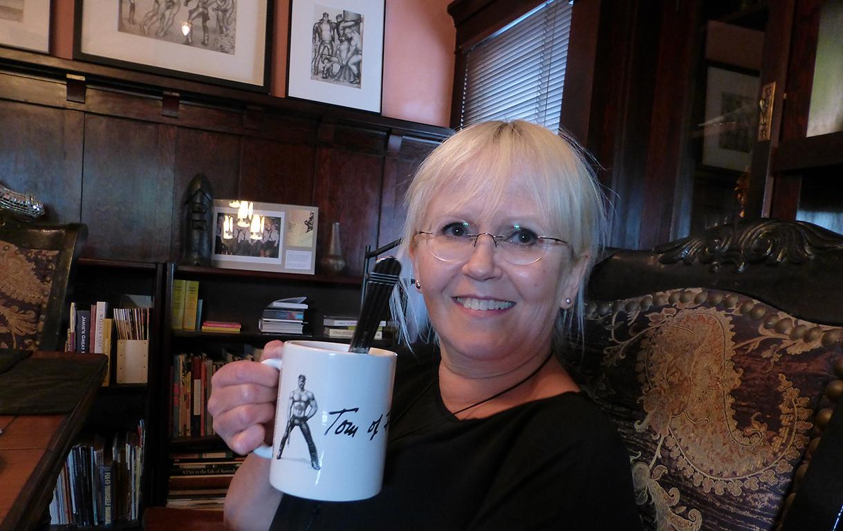 Kalifornia kierroksen lopuksi halusin myös poiketa Tom of Finlandin Foundationissa, joka on Los Angelesissa ja viedä sinne Tukilinja-lehti, jossa oli Wikistä kirjoittamani juttu. Pari päivää ennen lentoa takaisin Suomeen ajoimme yhdelle LA:n kukkuloista Laveta Terrace -kadulle. Olin kuvitellut, että Foundation olisi jossain toimistorakennuksessa, mutta Laveta Terrace oli vehreä, palmujen reunustama katu, jonka korkeiden pensasaitojen takana oli omakotitaloja. Epäilin meidän eksyneen. Soitin Foundationin puhelinnumeroon ja selitin, että olemme varmaan väärässä paikassa, mutta toisimme teille pienen tuliaisen Suomesta. Kun puhelimeen vastannut mies ymmärsi missä olimme ja millä asialla, hän kehotti meitä odottamaan hetken. Tuuheimmassa pensasaidassa oli musta portti, joka avautui.