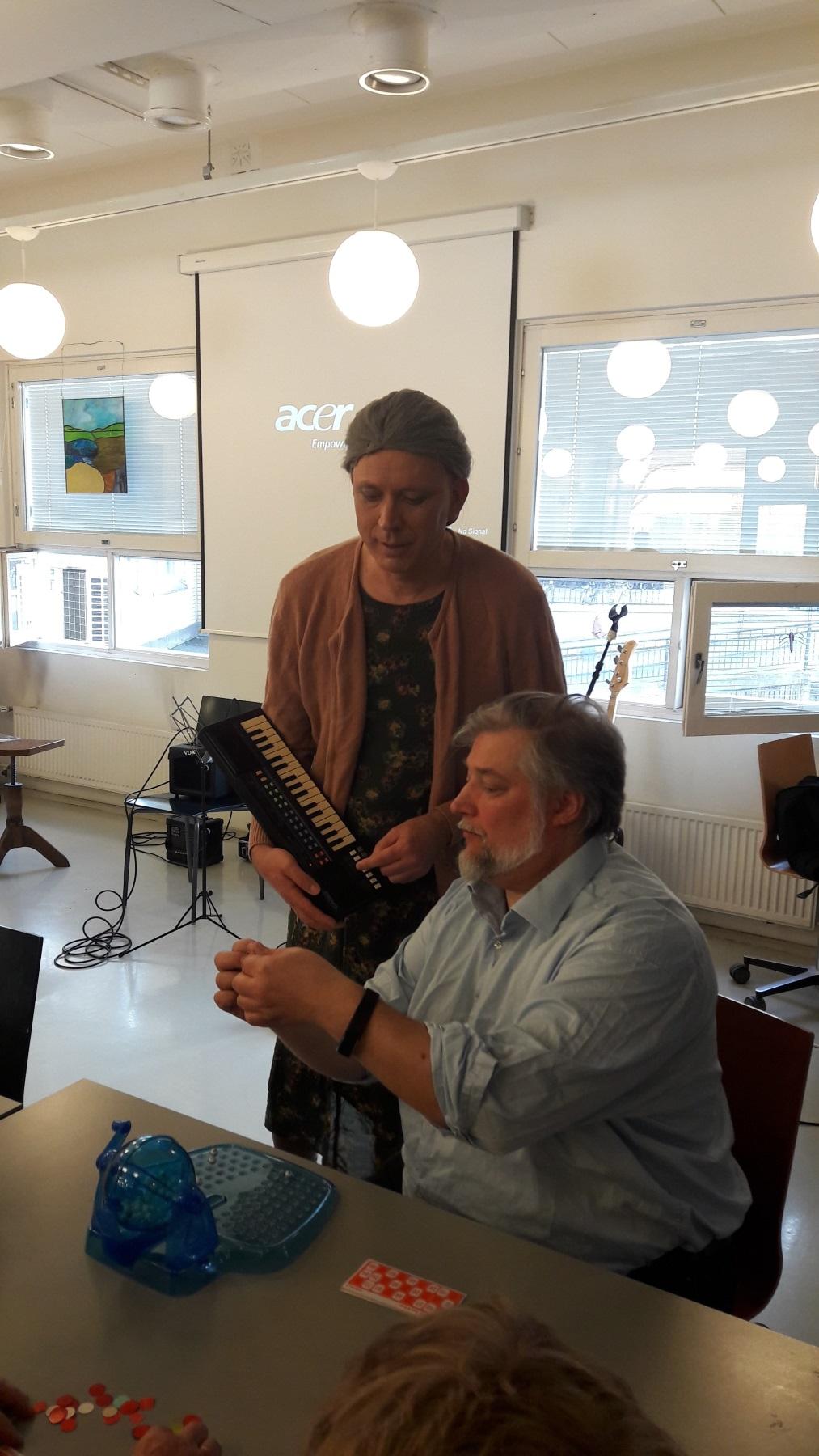 Kuvassa Aini Siviä Hurskainen ja onnetar vetämässä bingoa!