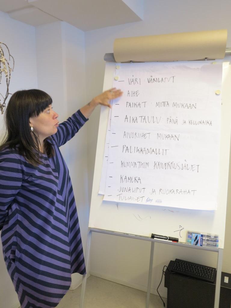 Kuva yllä: OmaPolku ry:n ohjaaja Hannele tarkistaa nuorten laatimaa muistilistaa, johon oli kirjattu ideariihessä läpi käytävät asiat