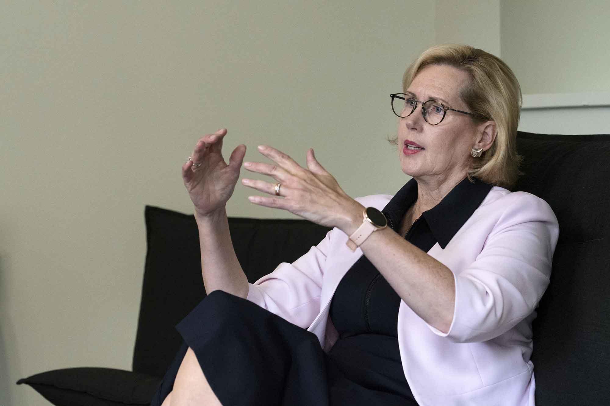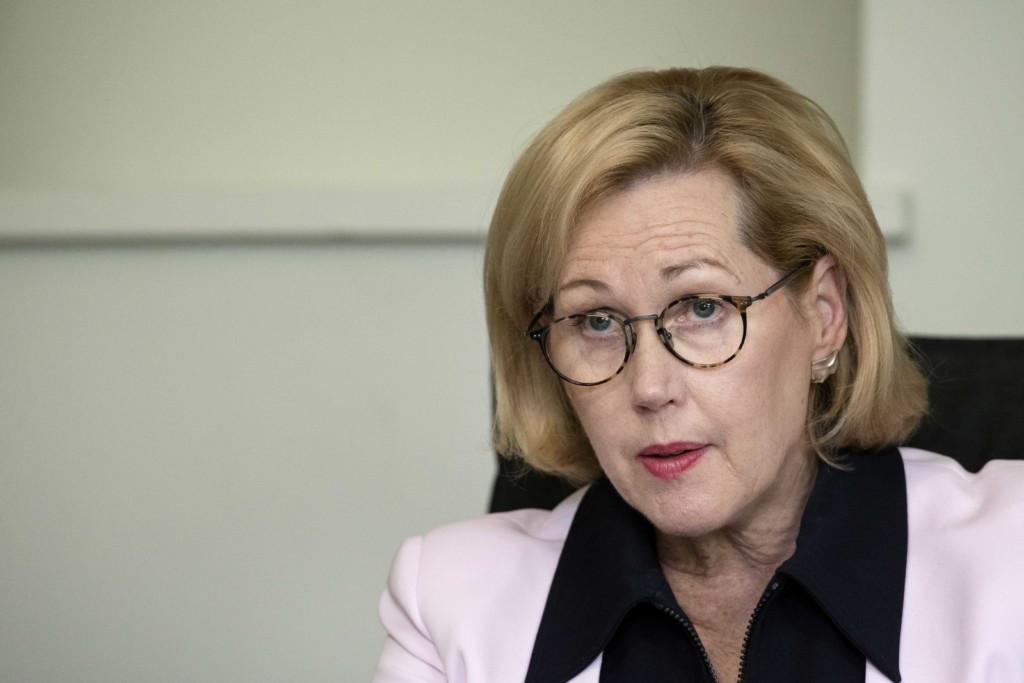 Työministeri Tuula Haatainen saapuu tarmokkain askelin työ- ja elinkeinoministeriön kabinettiin. Syksy on toden teolla alkanut ja sen myötä työministerin kiireet.